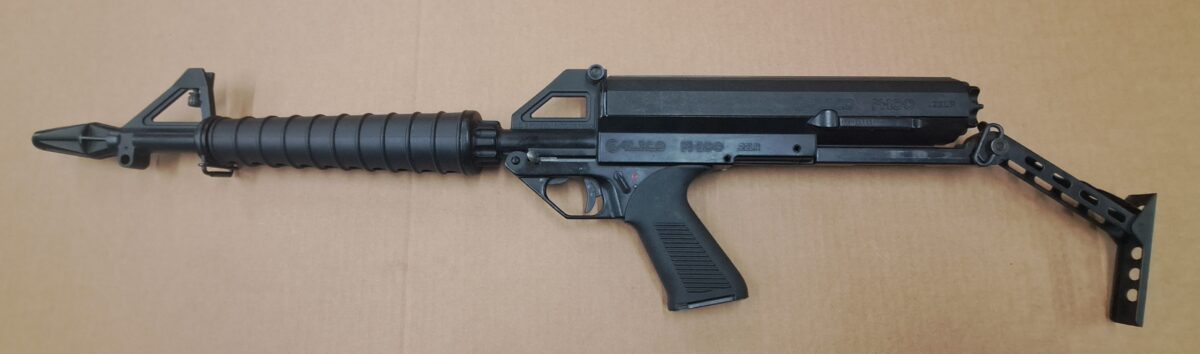 | DESCRIPTION | 22LR, 17 3/4″ brl, 100 Rd helical mag, no box |